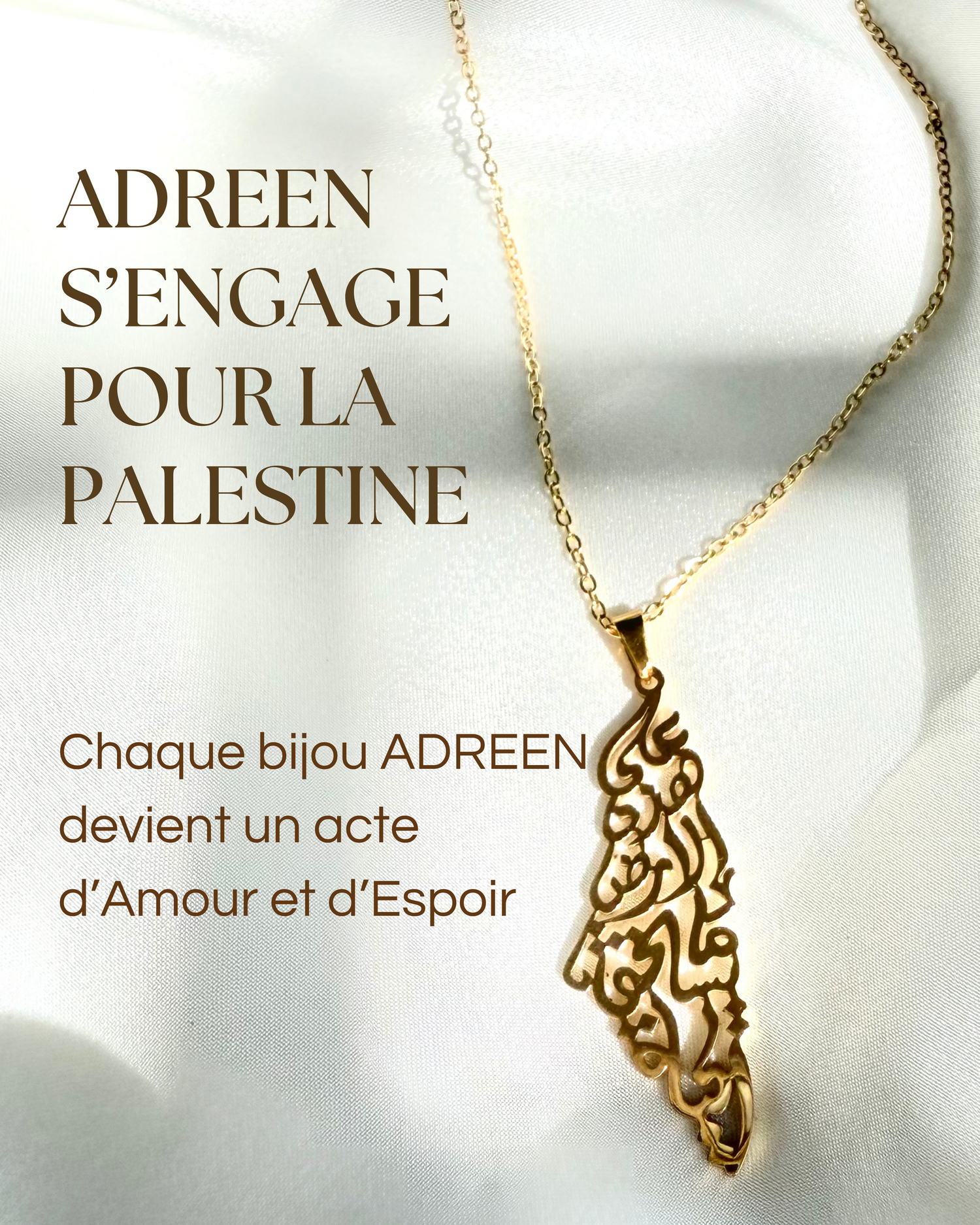 Pour chaque bijou ADREEN acheté, une partie du chiffre d'affaires est reversée en soutien au peuple palestinien.