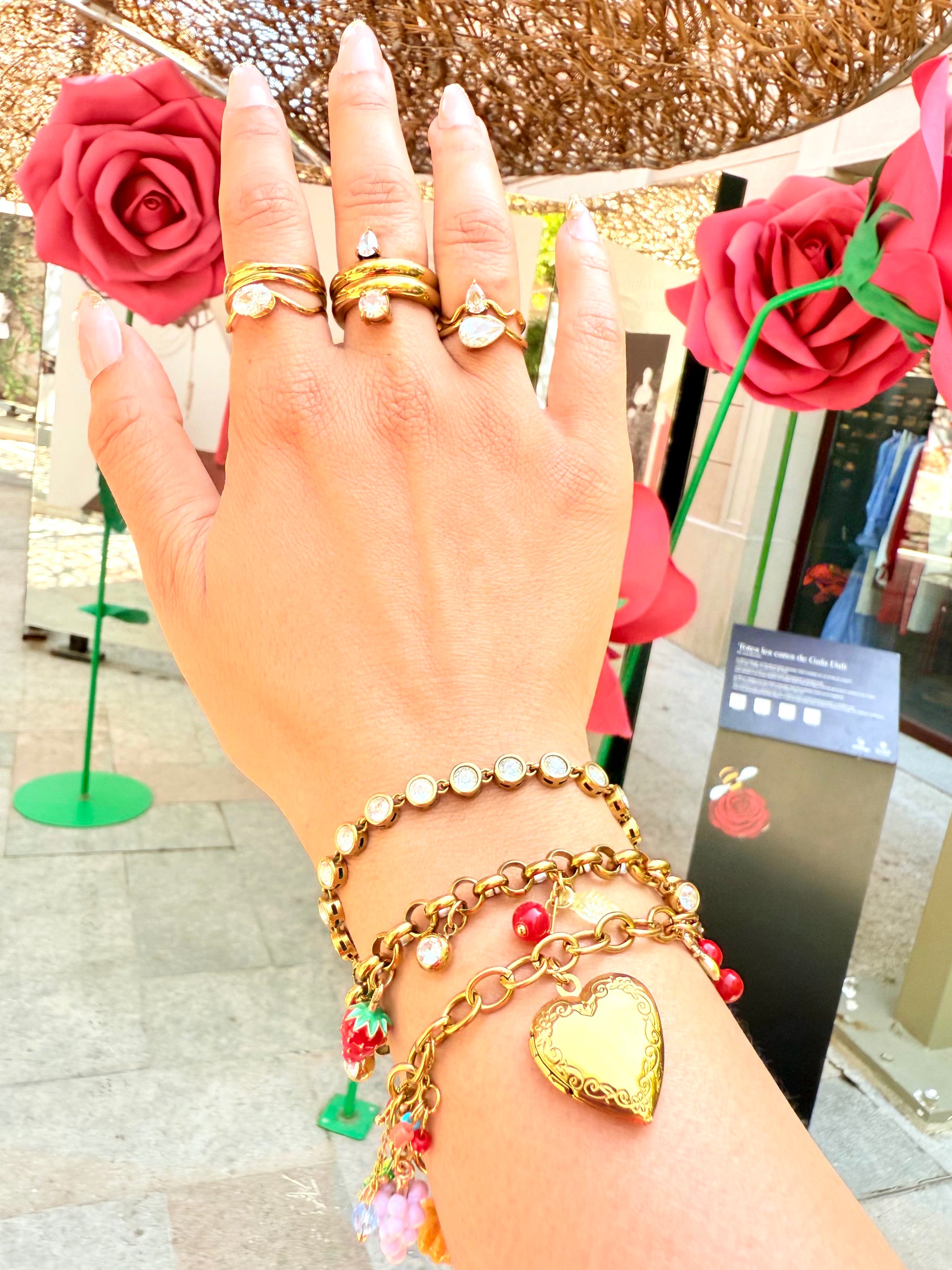 Un design raffiné, une brillance qui attire les regards et une durabilité à toute épreuve. Léger, féminin et moderne, le bracelet COEUR GOURMAND en acier inoxydable waterproof se porte sans contrainte et s’adapte à tous les styles.