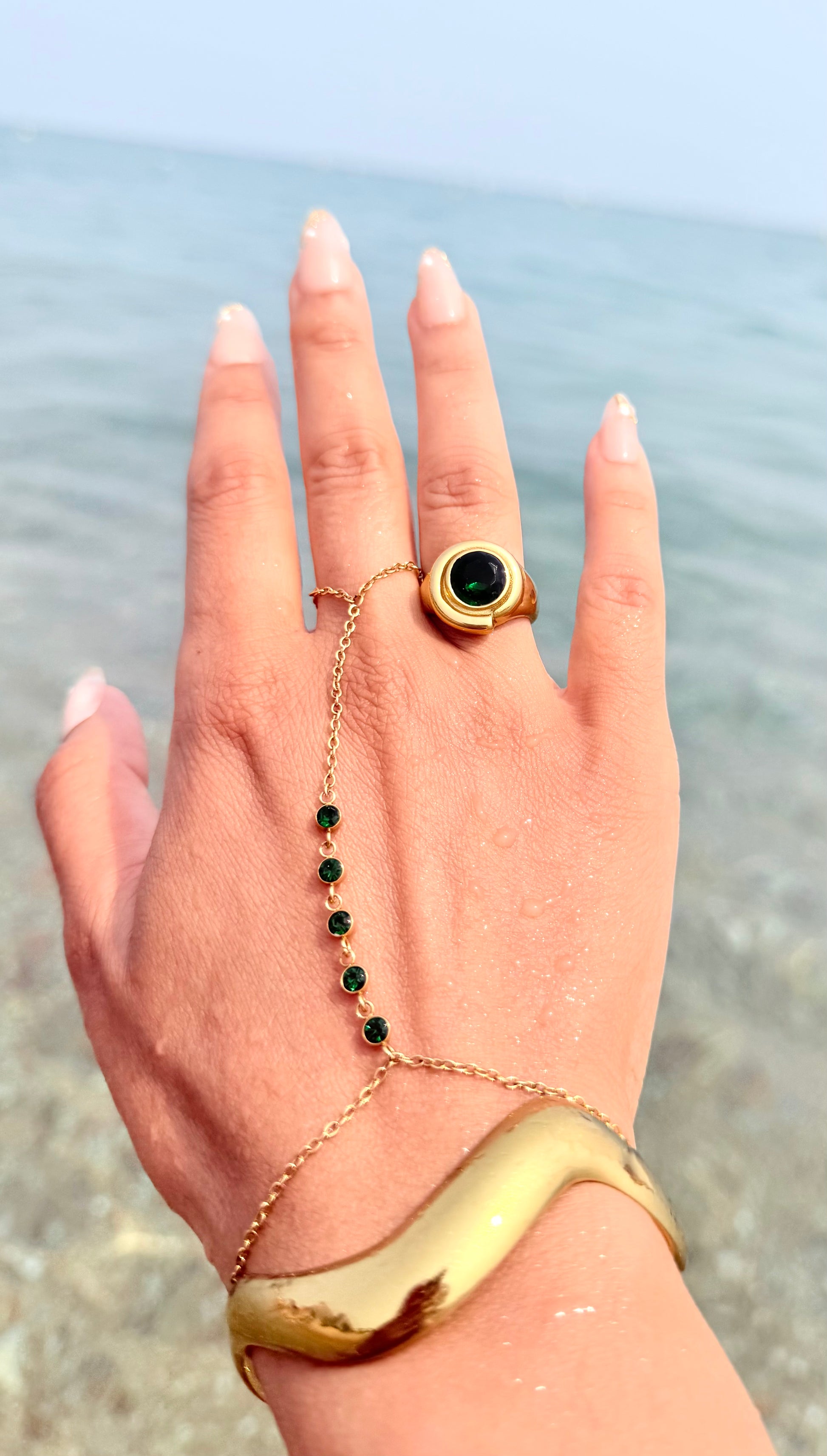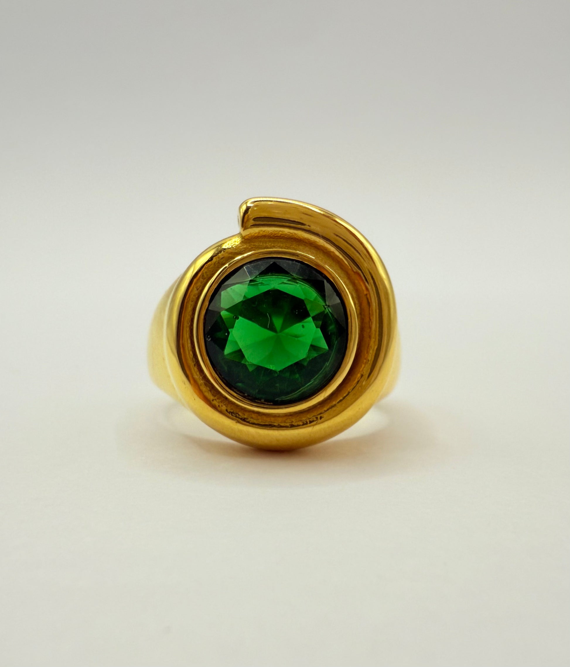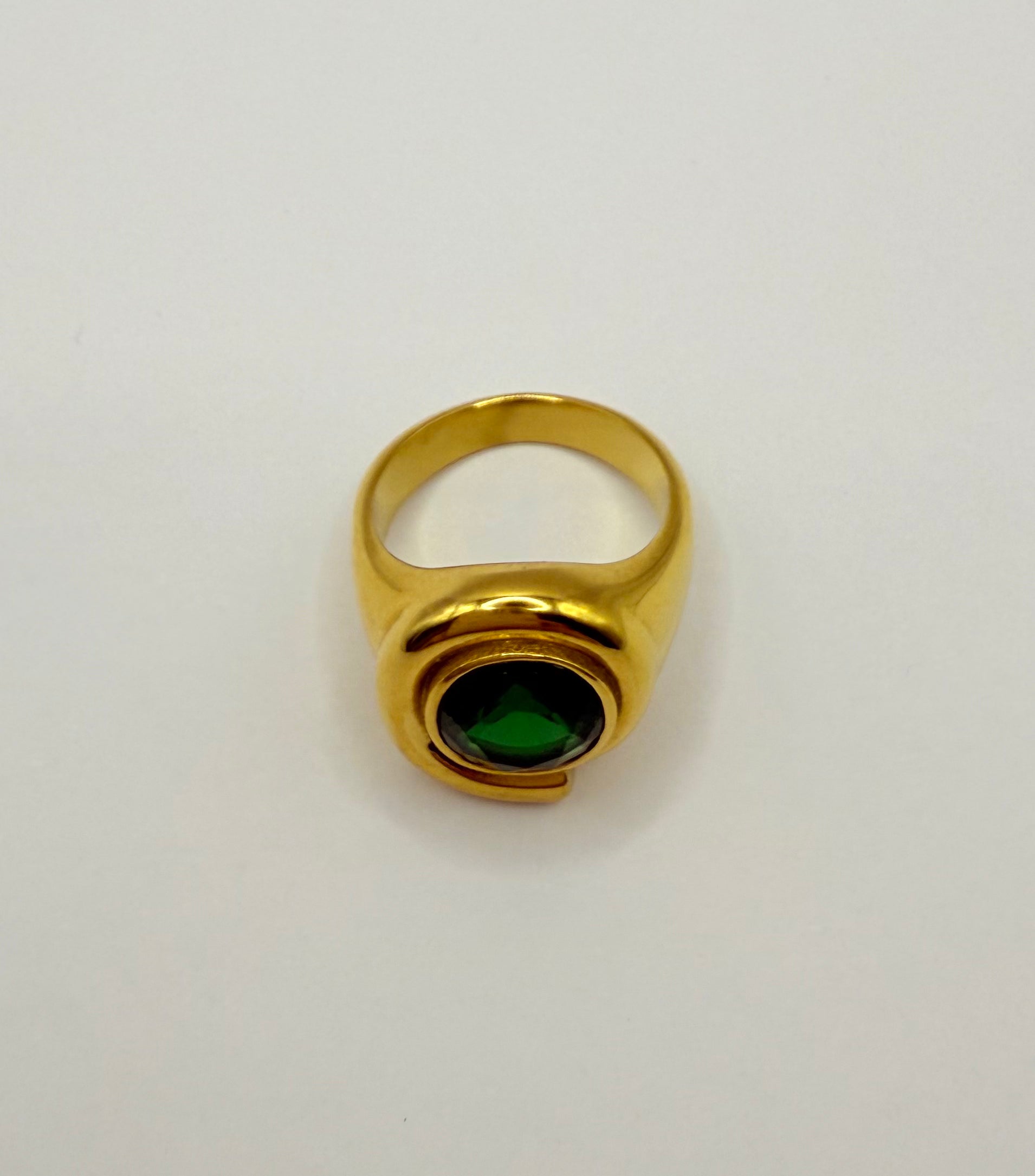 La bague ÉMERAUDE de ADREEN dévoile la profondeur d’un vert vibrant, symbole d’harmonie. Sa pierre lumineuse, délicatement sertie sur une monture dorée aux reflets solaires, capte la lumière avec grâce et sublime chaque geste.