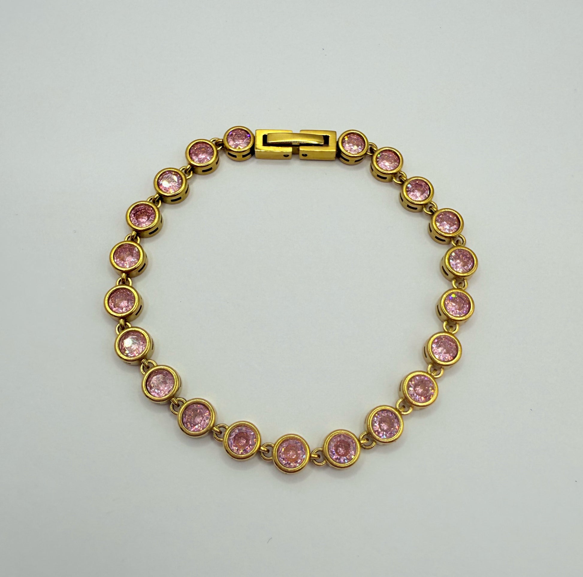 Son éclat doré sublime les nuances douces de ses cristaux roses, pour un bijou à la fois délicat et affirmé. Élégant, raffiné et symbolique, ce bracelet rend hommage à la beauté et à la force des femmes à l’occasion d’Octobre Rose.