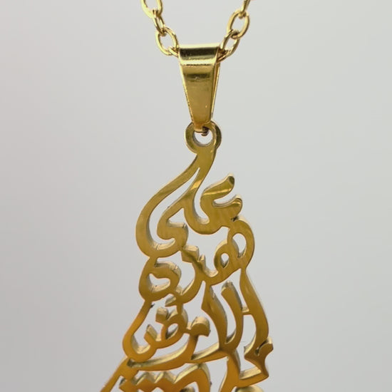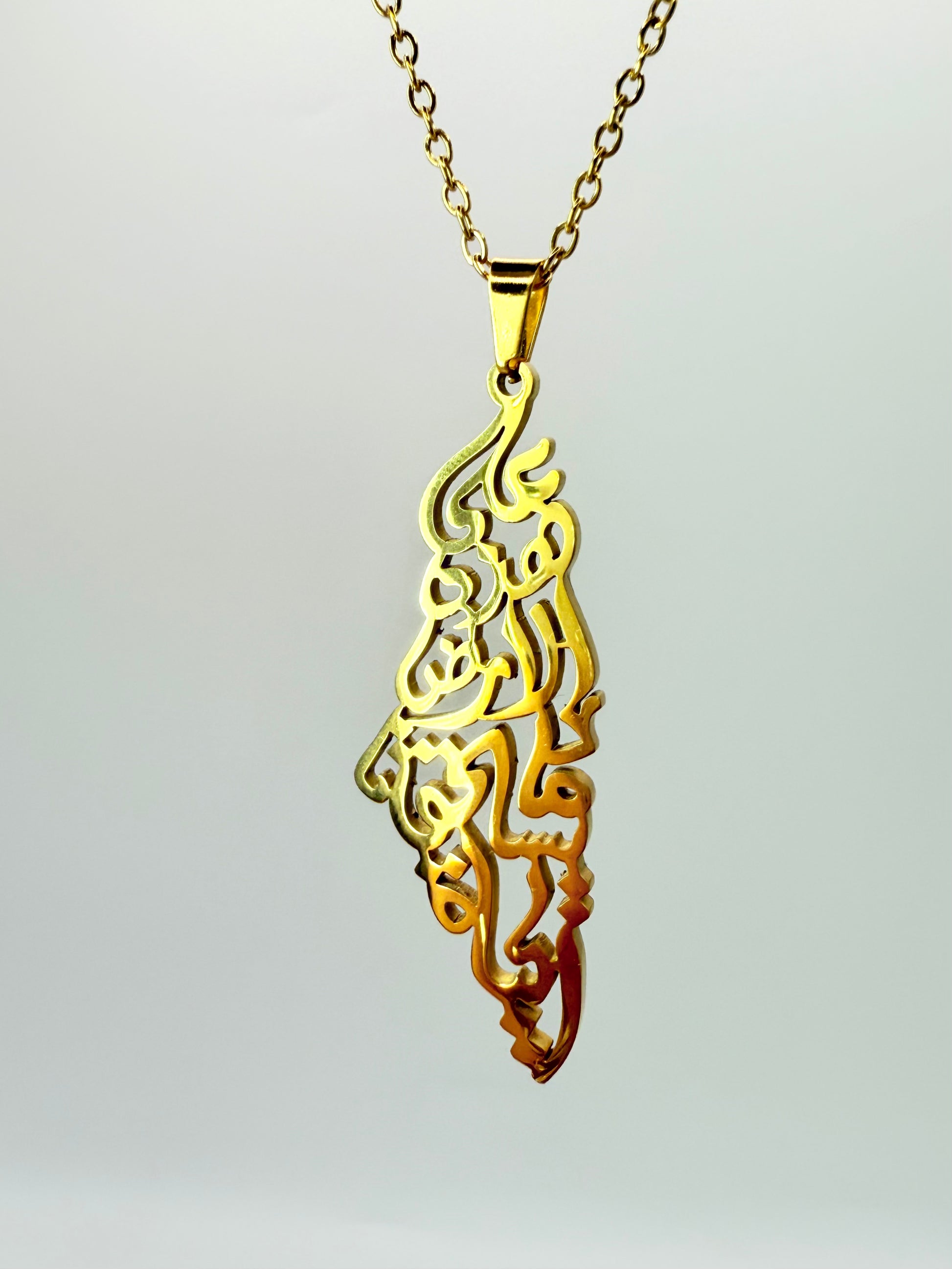 Le collier VOIX D'ESPOIR célèbre la force et la résilience d’un peuple à travers une calligraphie bouleversante: «Sur cette terre, il y a ce qui mérite d’être vécu».