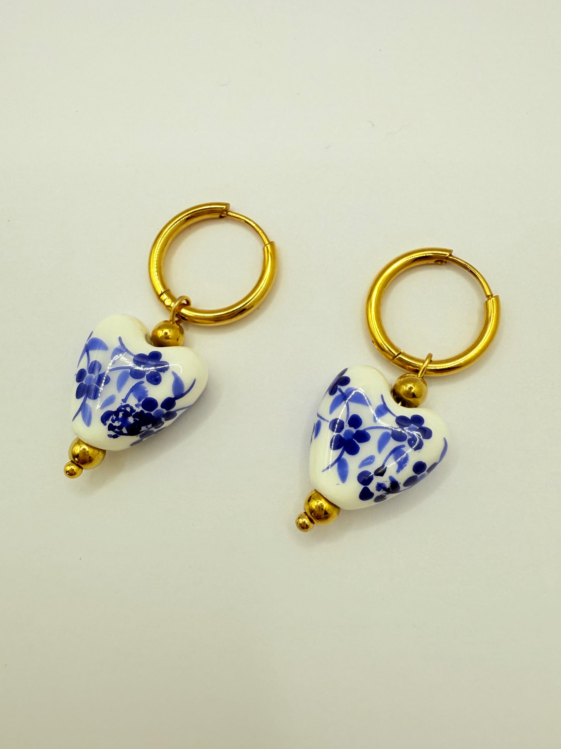 Les boucles d’oreilles COEUR D'IRIS allient l’éclat de l’or et la finesse d’un cœur en porcelaine blanche aux motifs bleus inspirés des céramiques traditionnelles. Leur design raffiné apporte cette touche unique qui illumine vos tenues, qu’elles soient simples ou sophistiquées.
